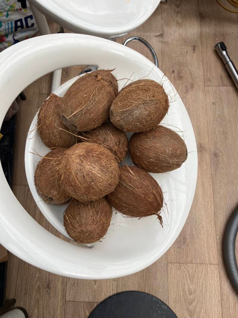 Rijst met spruitjes, spekjes, en droog gebakken vis.